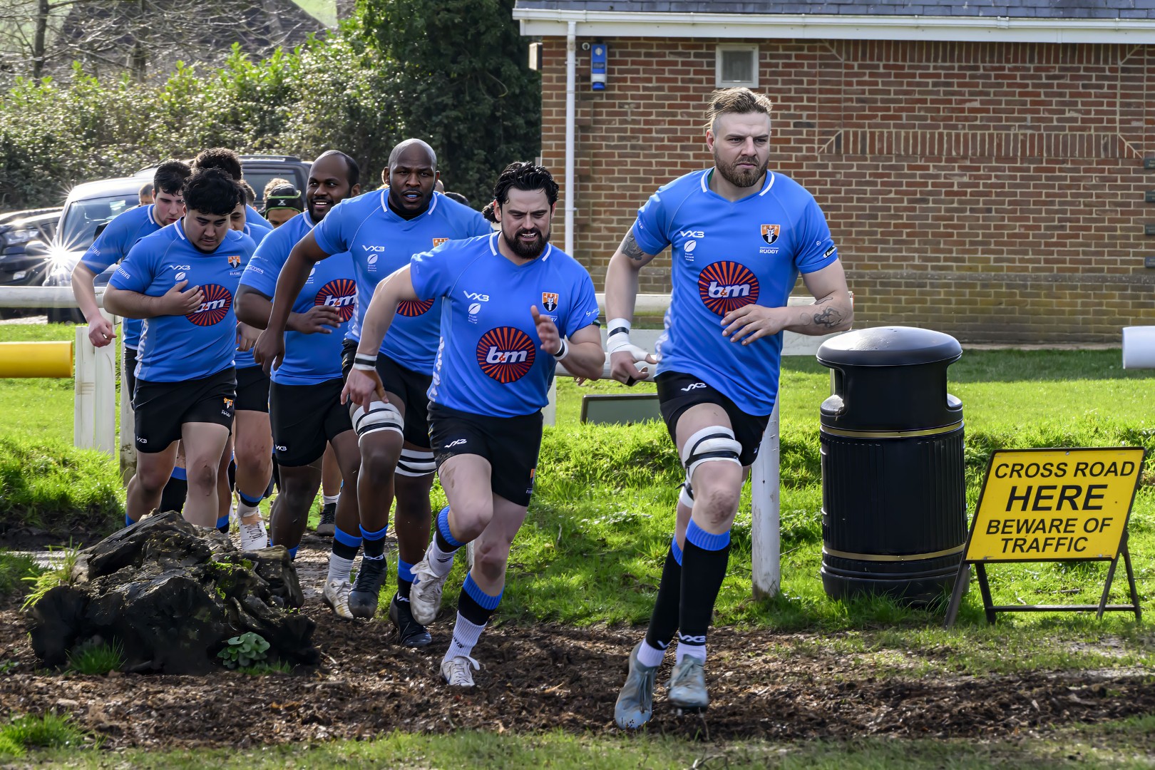 Twenty minutes of hard-and-fast and back-and-forth rugby ensued and the crowd on the touchline were treated to some fine displays of sportsmanship. We were playing downhill and with the wind to our backs in this first half, so we needed to establish a decent barrier to protect in the second half... We were not able to score, however, and then suffered a blow when our scrum-half, Will Grant, went off (and to the hospital) with a nasty gash to his leg. Some rearrangement on the pitch was required, and in the midst of us getting used to it, Brixham scored. Marlborough Rugby 7-7 Brixham RFC after 25 minutes of really good rugby in the sunshine!