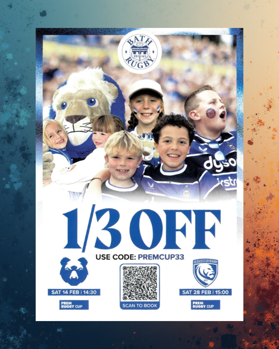 First up: a sweet 1/3 off Bath Rugby tickets!